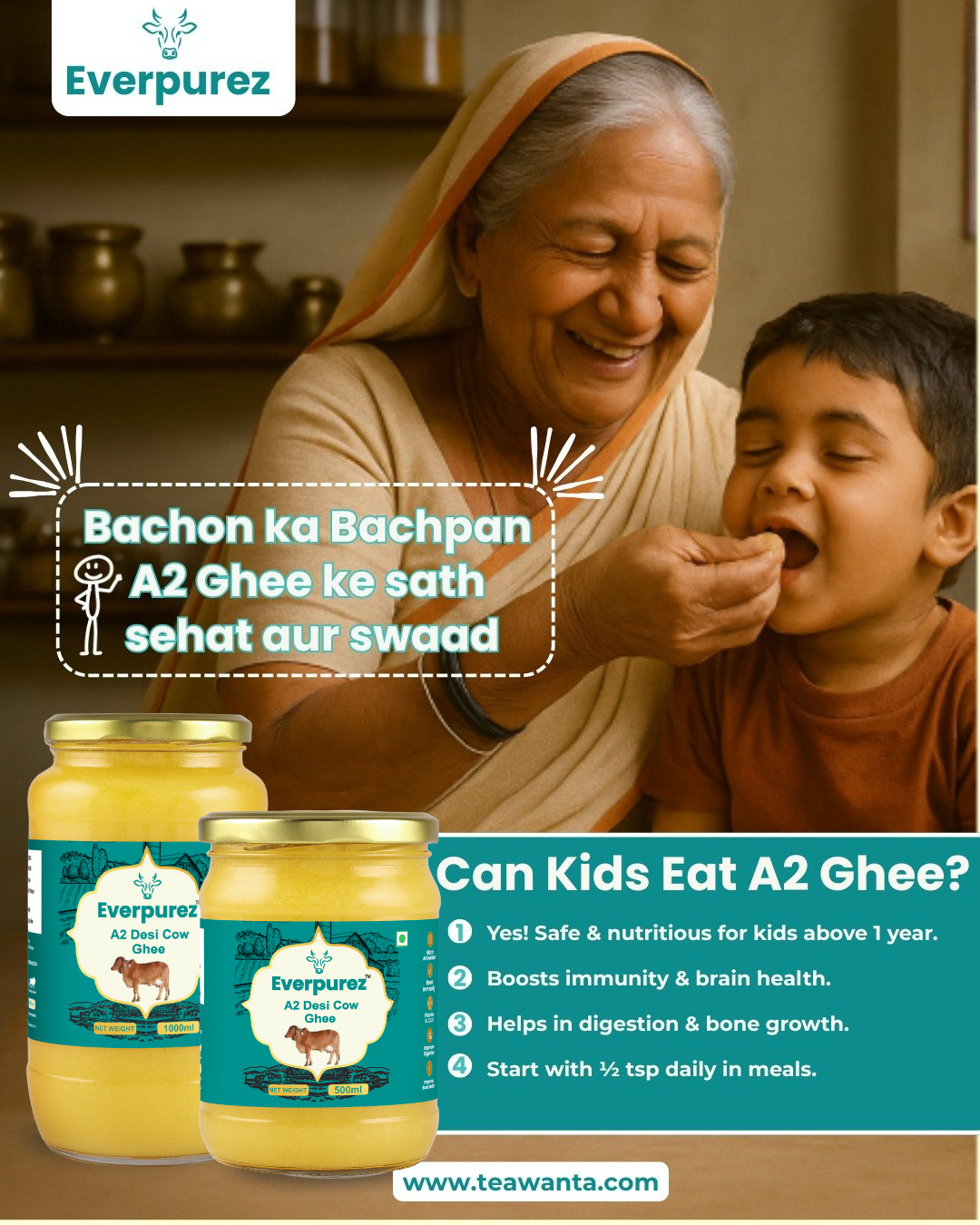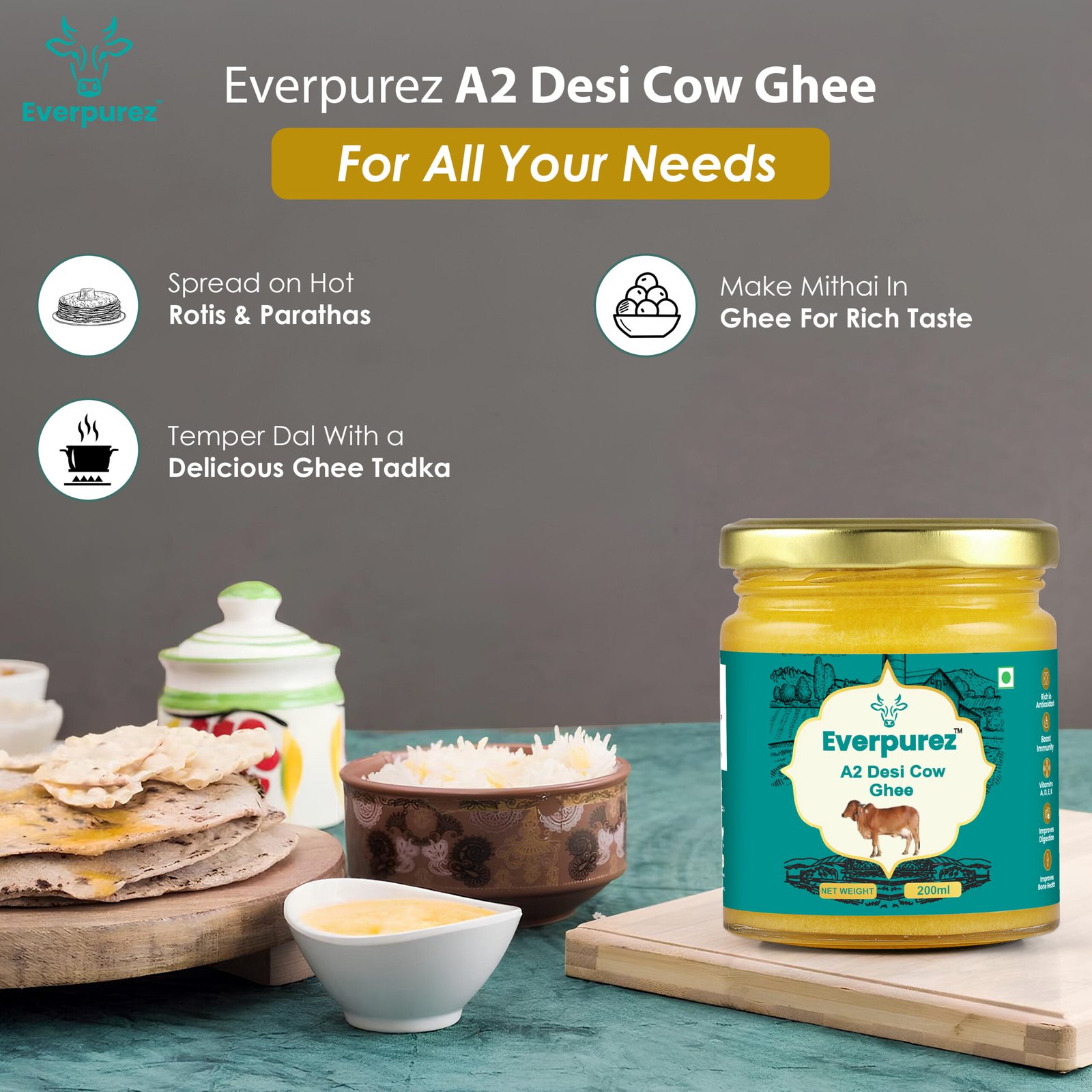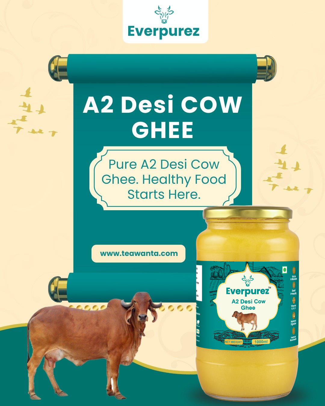 Give your loved ones the gift of pure wellness — Everpurez A2 Desi Cow Ghee, packed in elegant, eco-friendly festive boxes.
