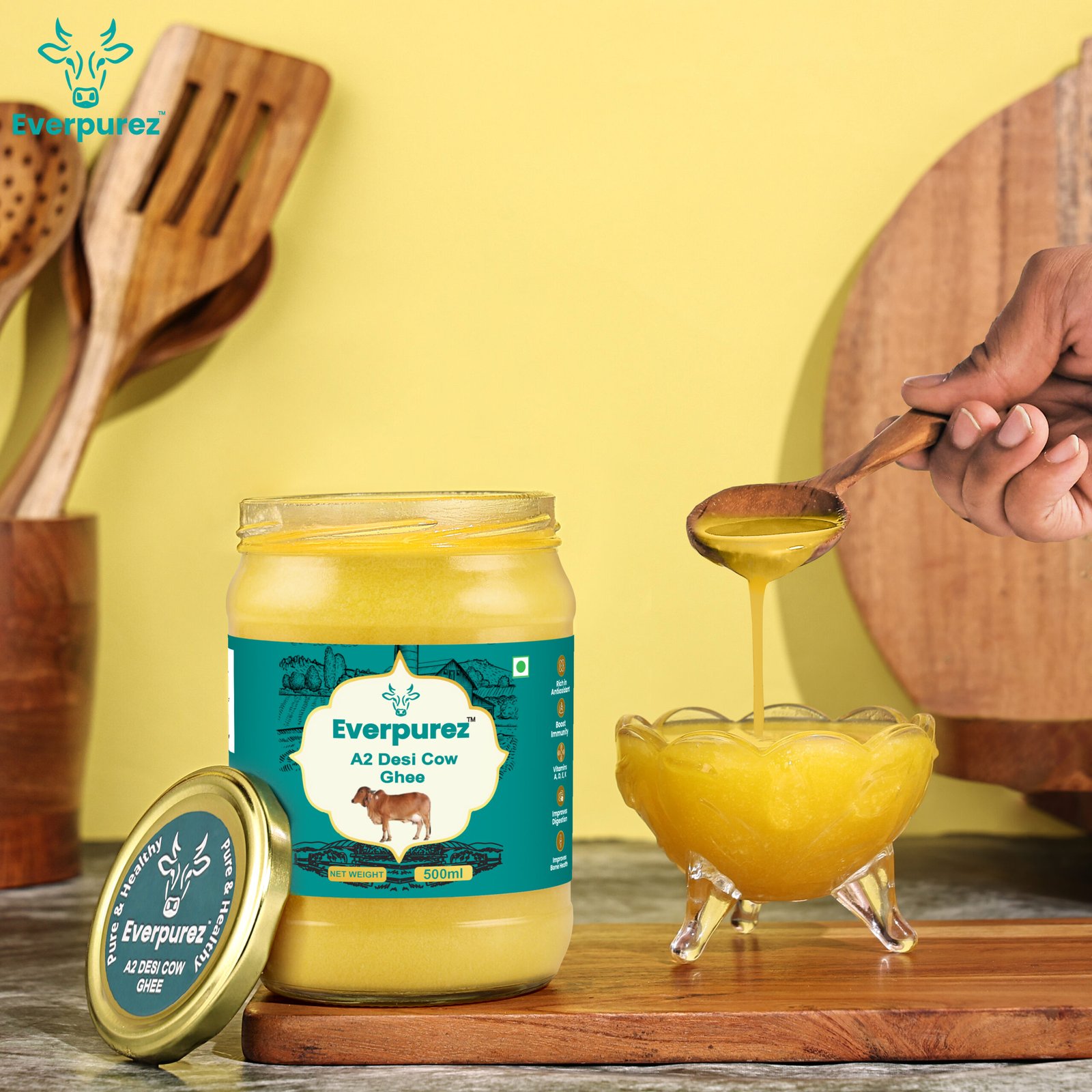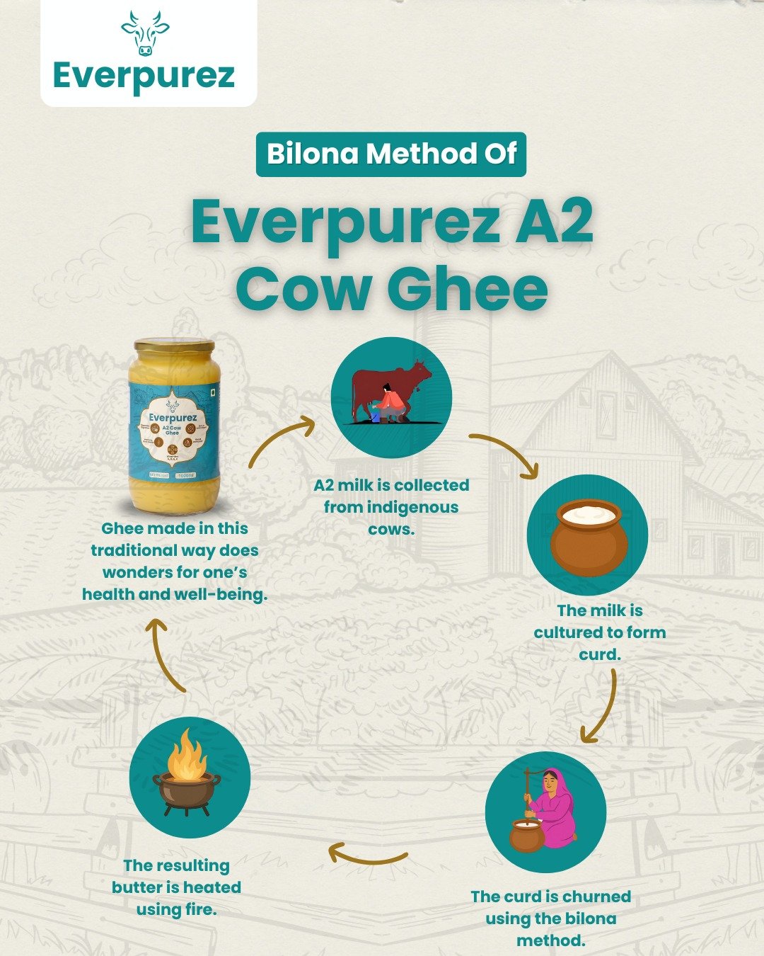 At Everpurez, we follow the traditional Bilona method, a time-honored process that preserves purity, nutrition, and flavor in every drop of ghee