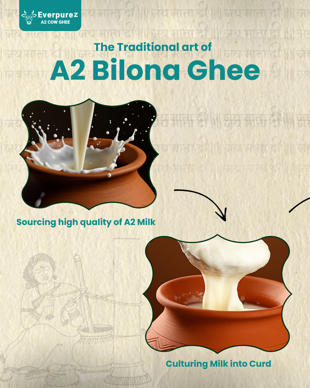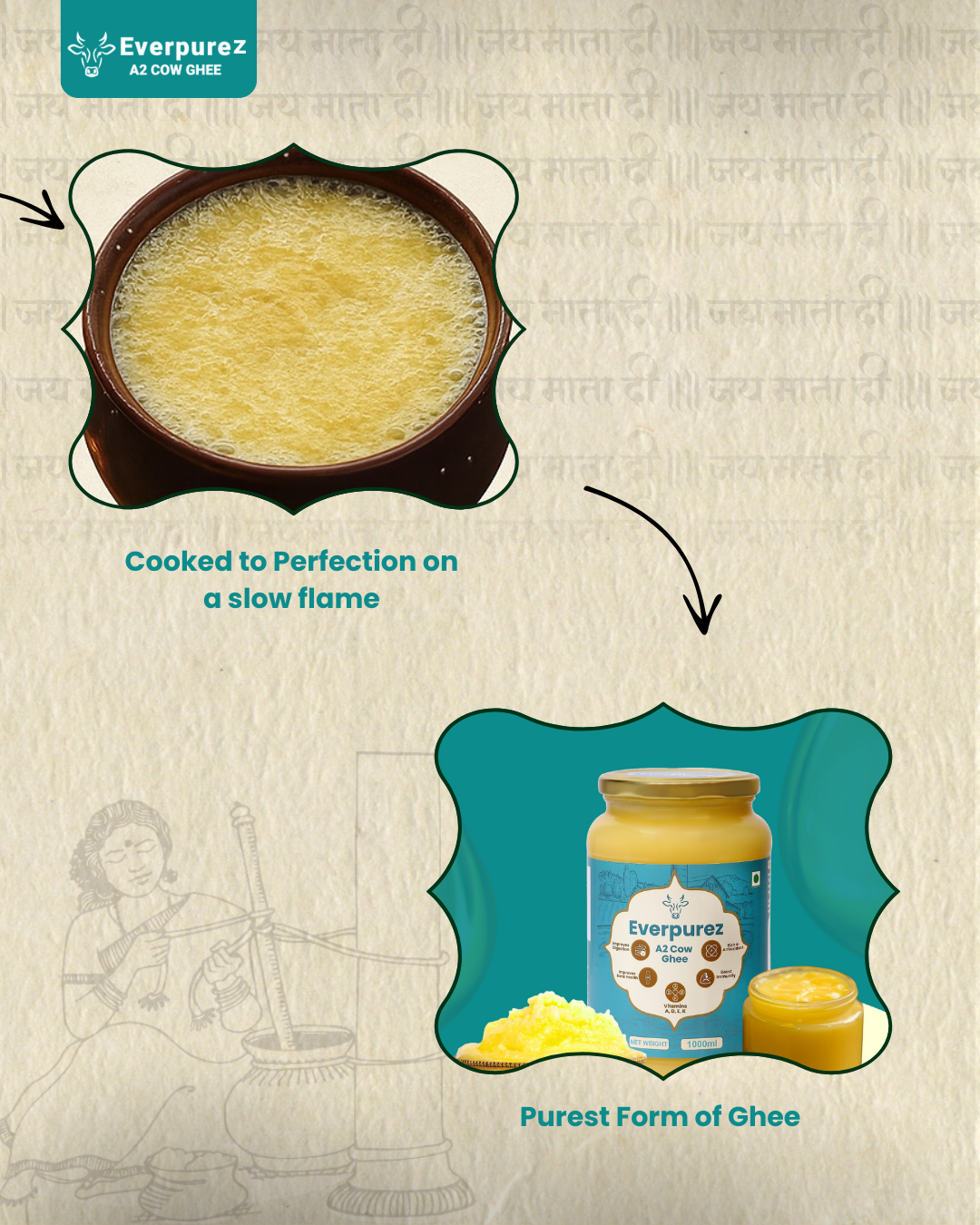 At Everpurez, we follow the traditional Bilona method, a time-honored process that preserves purity, nutrition, and flavor in every drop of ghee